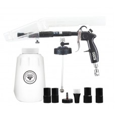 К примеру, пылесос для химчистки автомобиля бренда Tornador, укомплектован большим набором насадок: